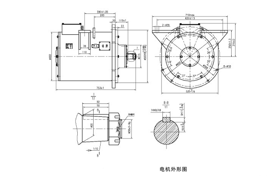 該電機(jī)系CJY14-6.7.9/550及CJY14-6.7.9/250二級傳動的交流變頻架線式礦用電機(jī)車主牽引電動機(jī)。該電機(jī)具有結(jié)構(gòu)簡單、高效、節(jié)能、免維護(hù)、運行平穩(wěn)等優(yōu)點。